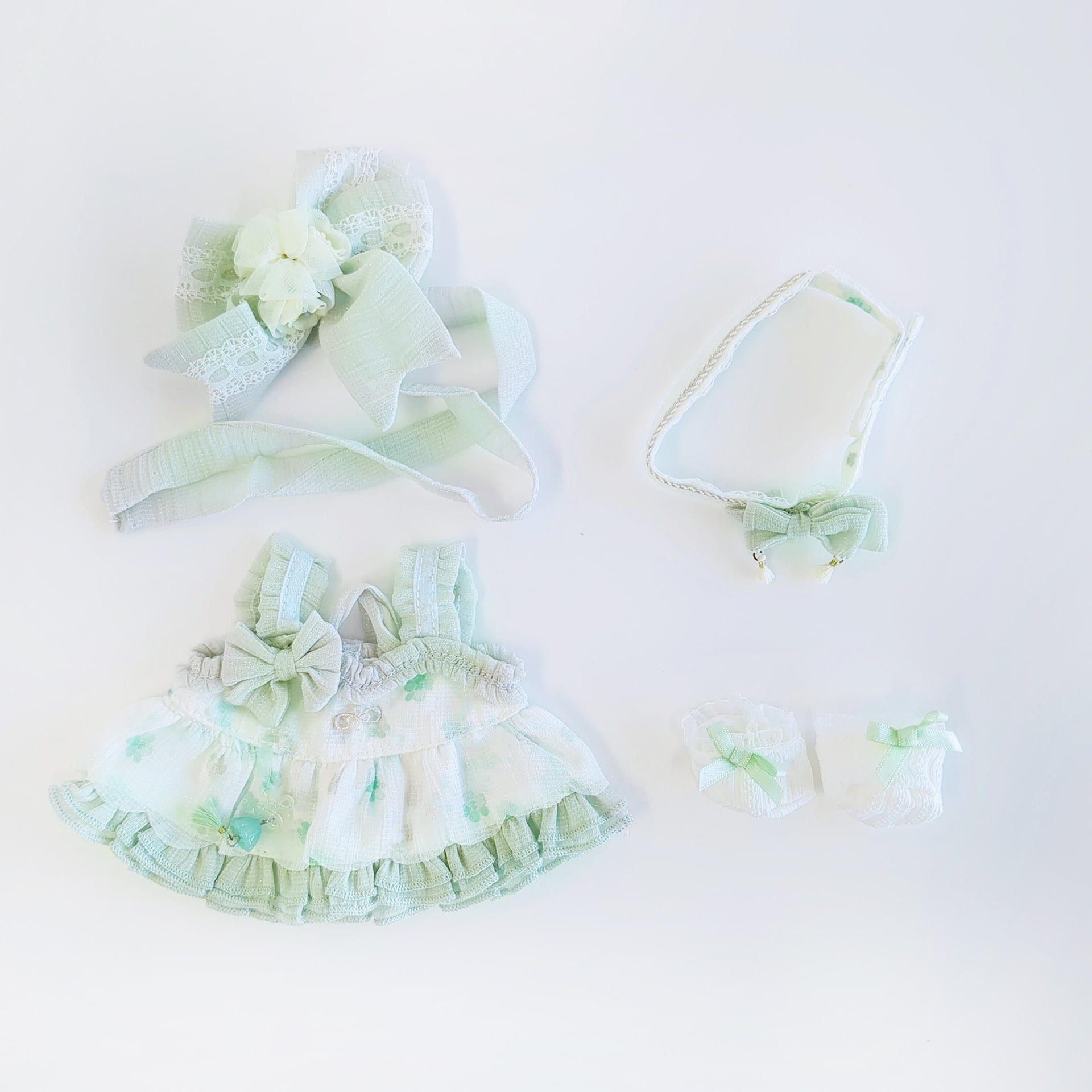 20cm着せ替えぬいぐるみ用 淡緑のワンピースセット