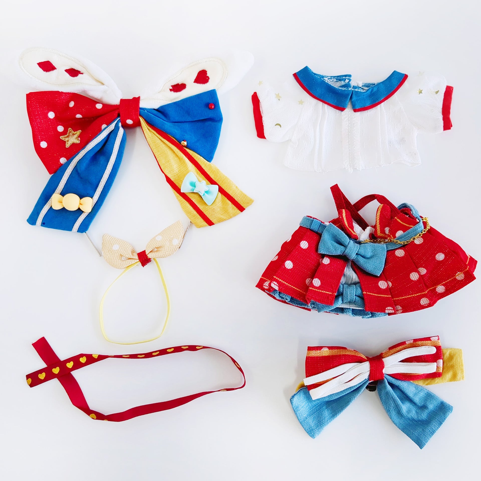 【カチューシャ、首飾り、トップス、ワンピース、リボン、タスキ】6点