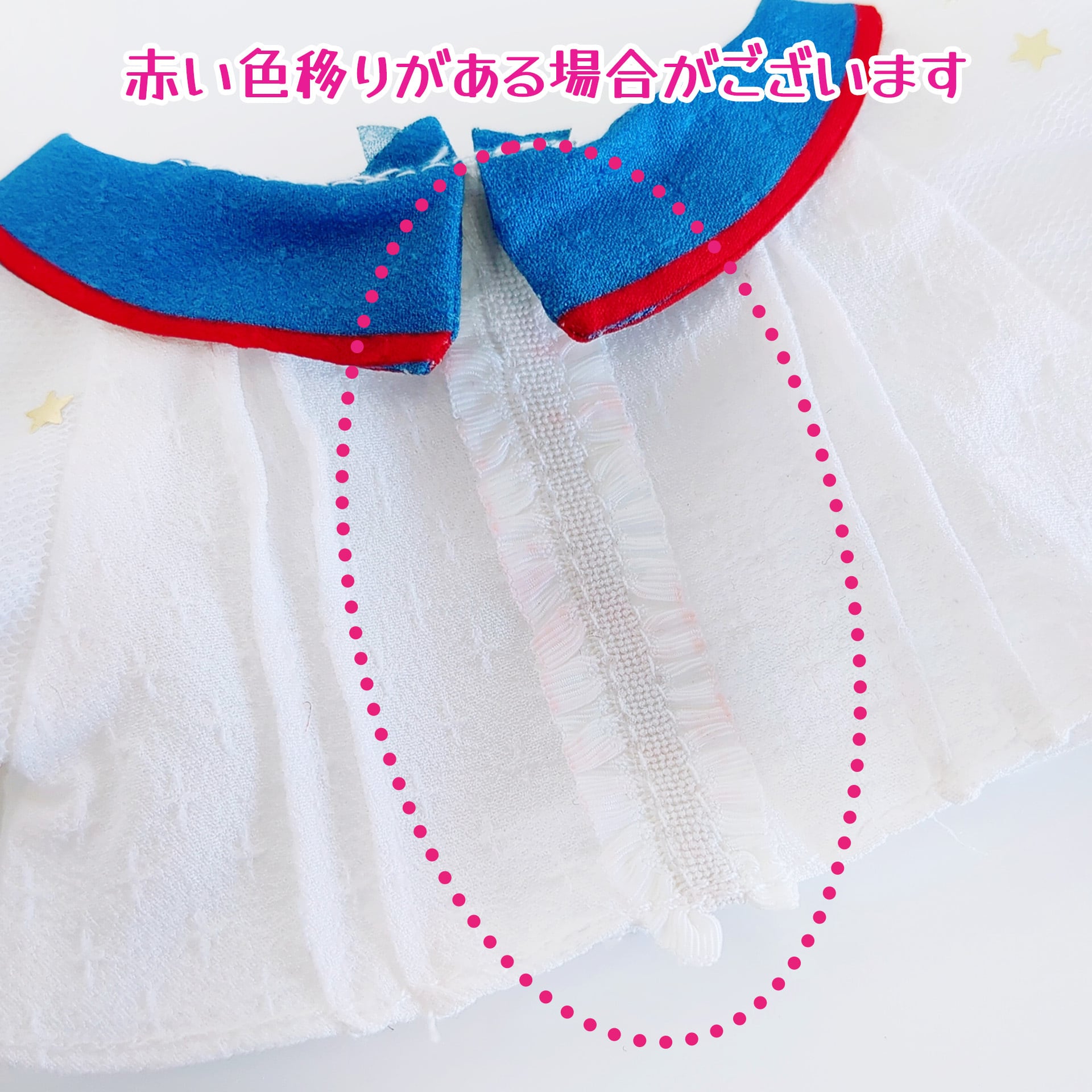 ※衣装や小物からぬいぐるみに色移りする場合があります。特に濃色(紺・黒など)や湿度の高い場所でのご使用はご注意ください。