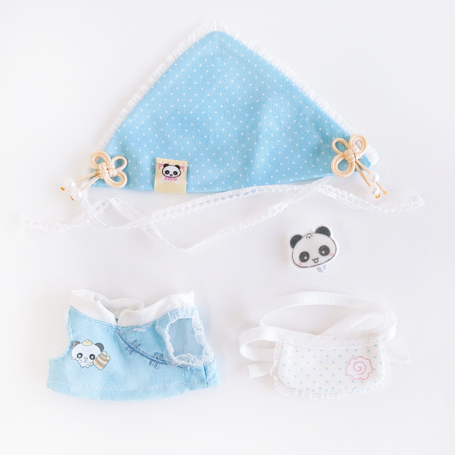 ブルー【バンダナ、トップス、エプロン、持ち手付きワッペン】4点
