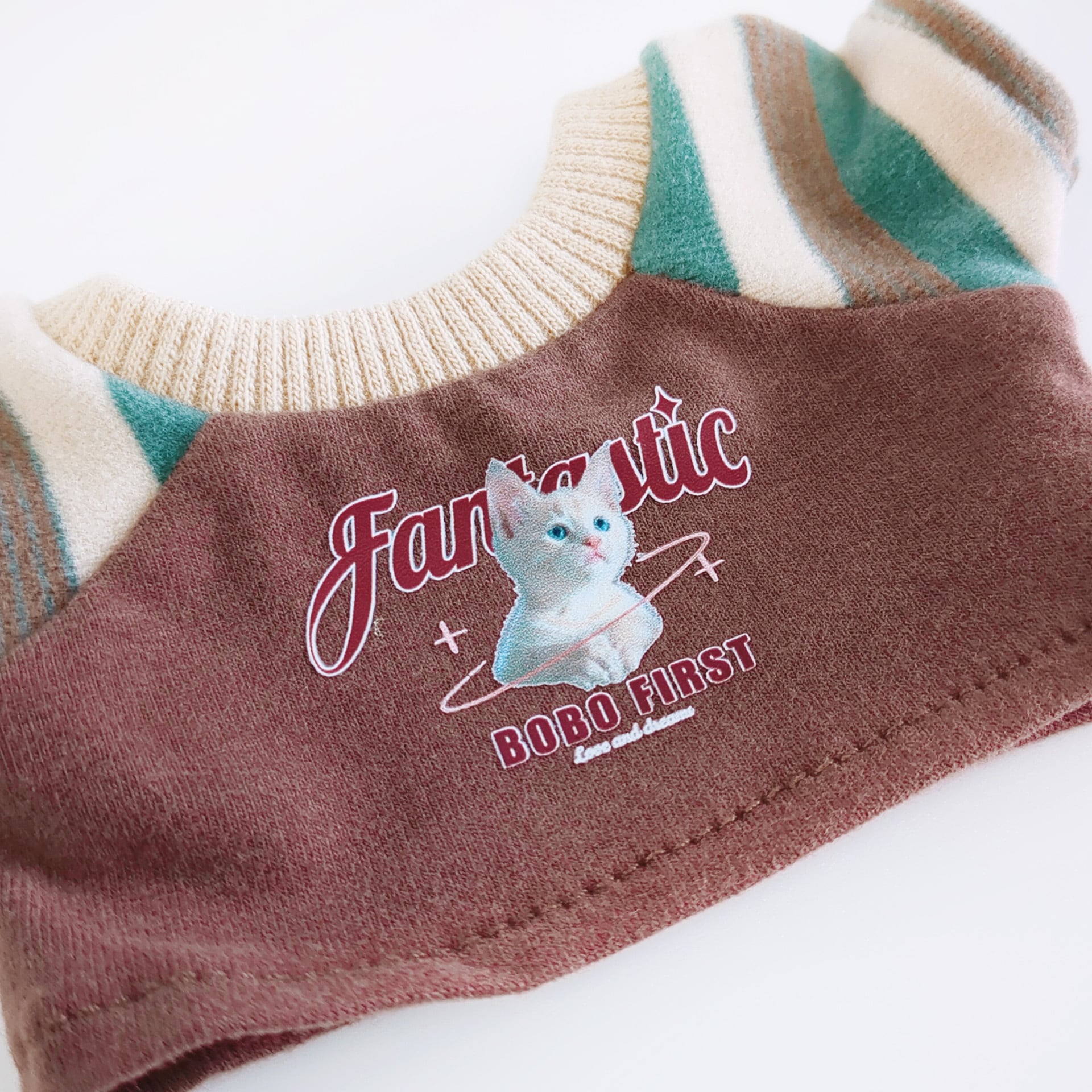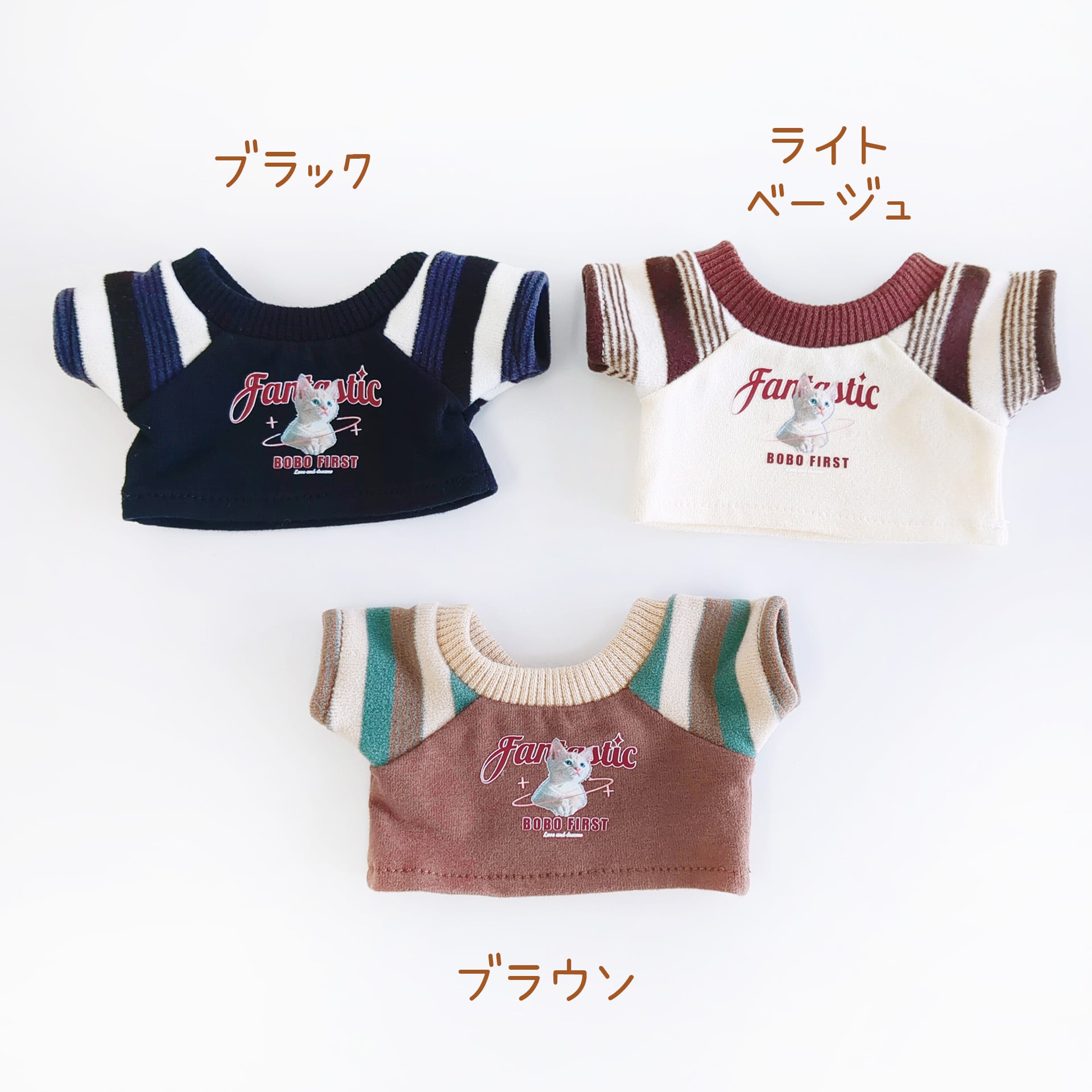 20cm着せ替えぬいぐるみ用 ネコ柄縞袖トップス