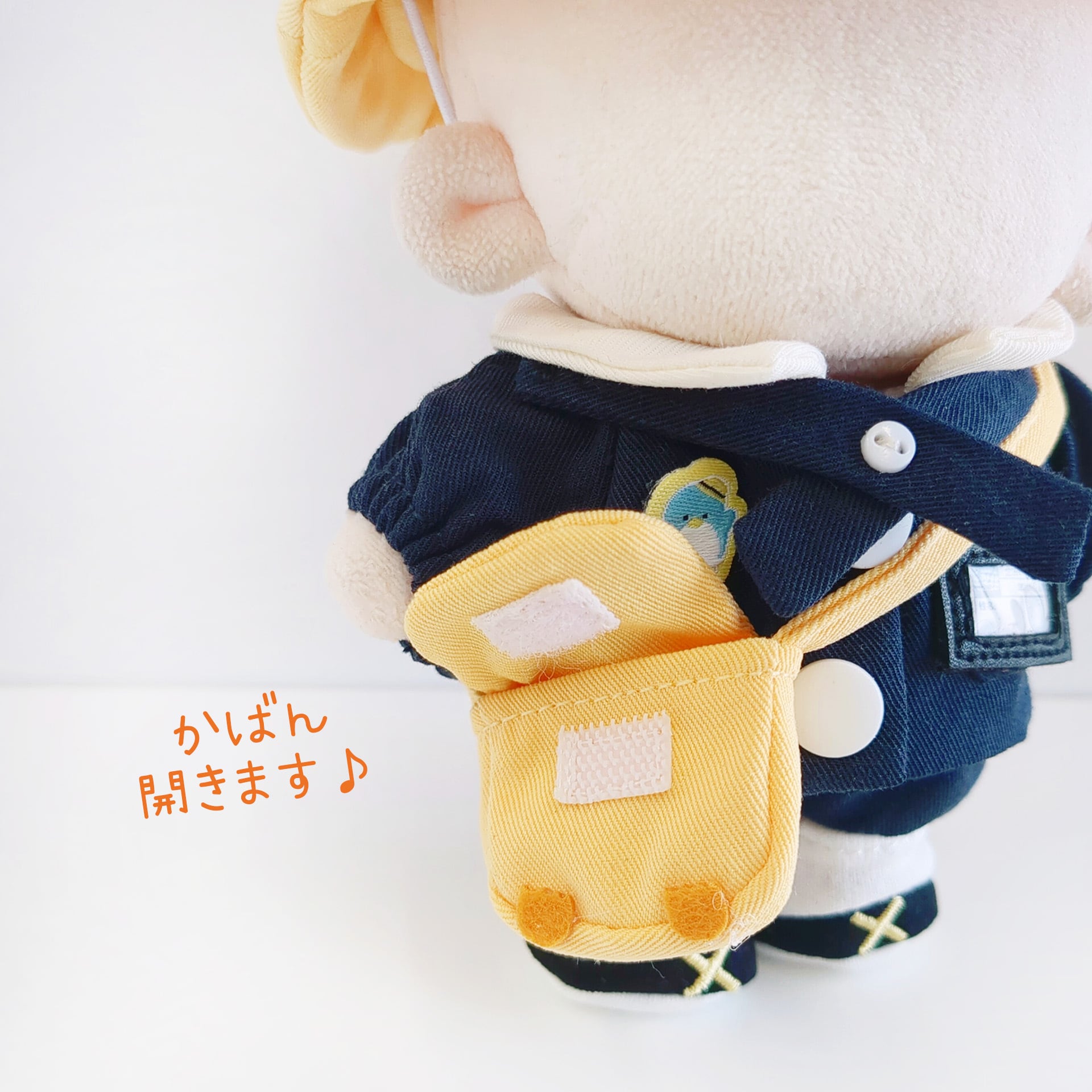 ※衣装や小物からぬいぐるみに色移りする場合があります。特に濃色(紺・黒など)や湿度の高い場所でのご使用はご注意ください。