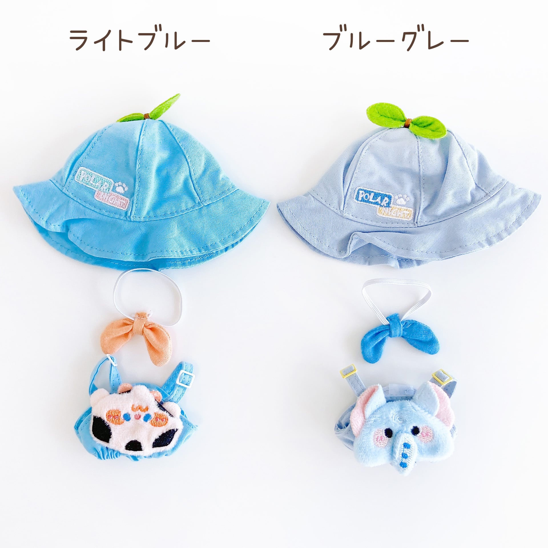 10cm着せ替えぬいぐるみ用 双葉ハットとカラフルアニマルサロペットセット