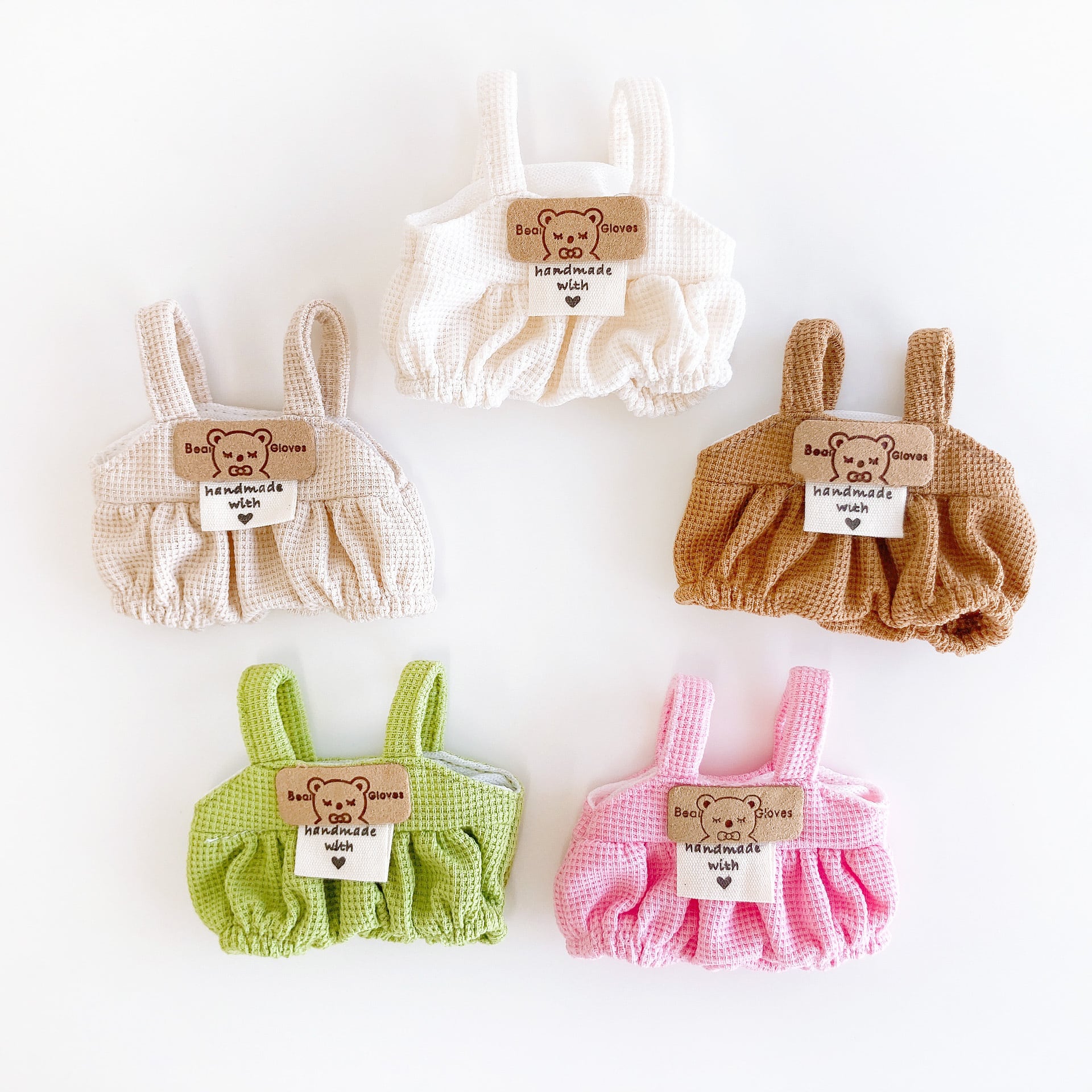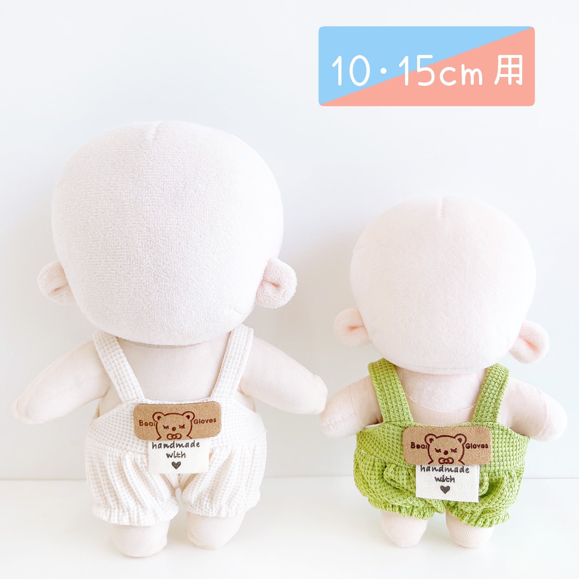 10cm/15cm着せ替えぬいぐるみ用 ワッフル生地のサロペット